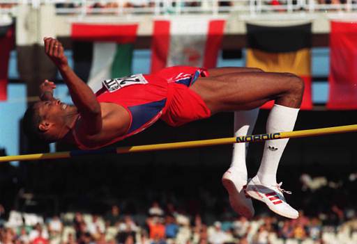 World Record holder in the High Jump Javier Sotomayor of Cuba (8-0.5) set in Salamanca, Spain July 27, 1993 |